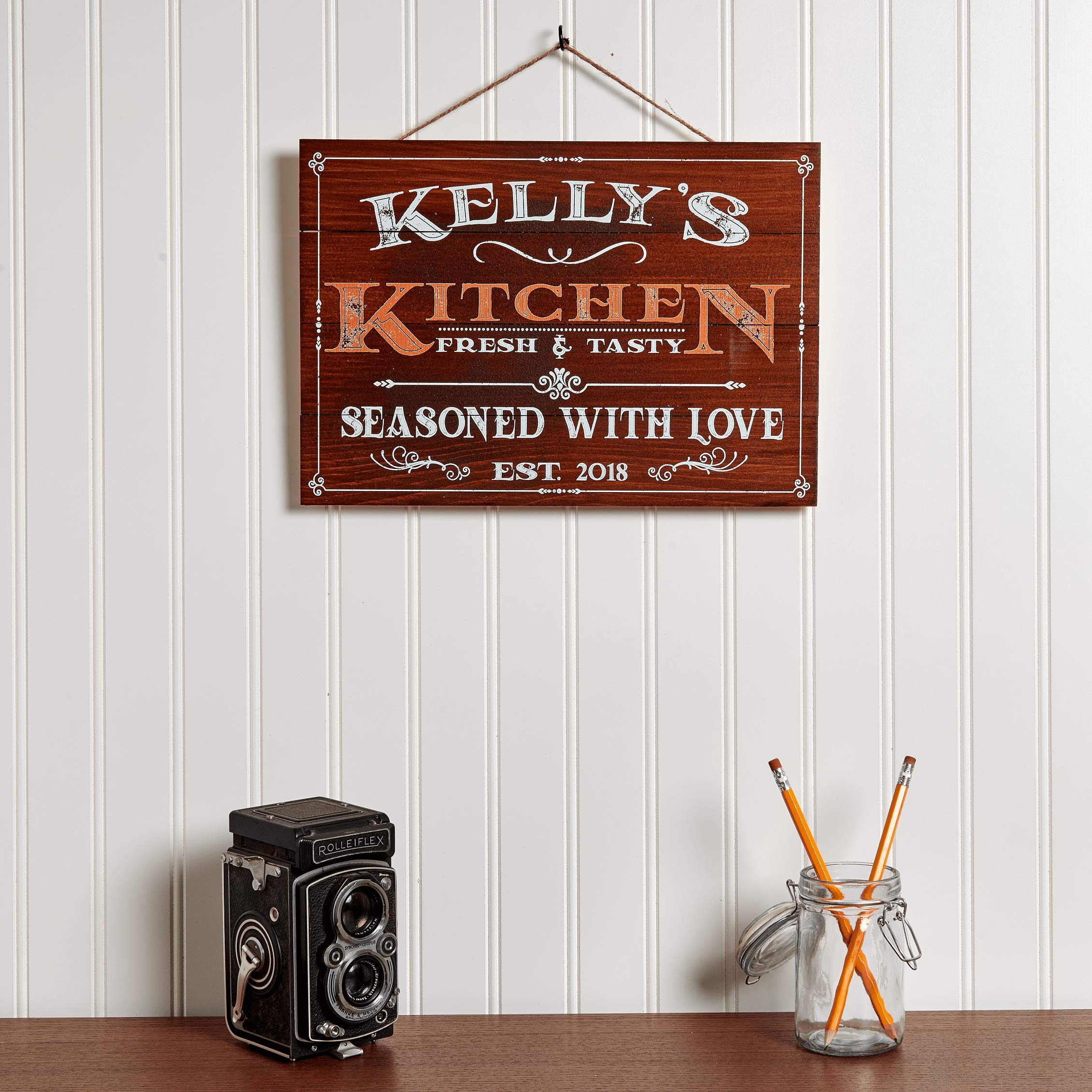 Amazon Com Artblox Personalized Kitchen Sign Customized Last Name Signs For Home Decor Farmhouse Kitchen Wall Decor For Mothers Day Gift Housewarming Wedding Gifts 13 X9 Brown Orange Home Kitchen