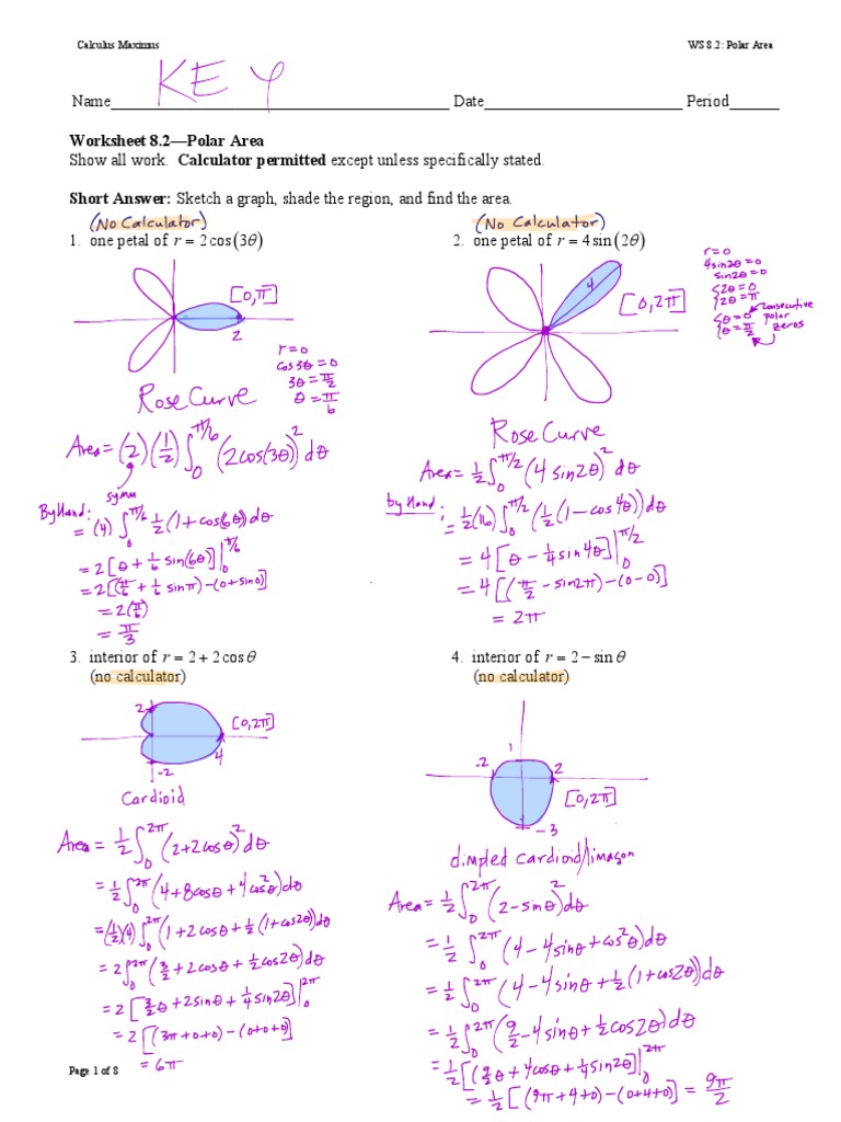 Worksheet 8 2 Polar Area 2 2cos 2 Sin Pdf Area Cartesian Coordinate System